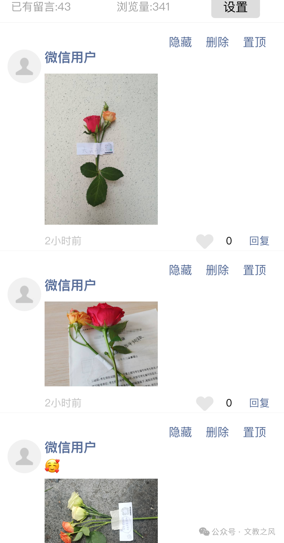 路人或其他同学在扫码留言后可将鲜花带走,留言区精彩纷呈“今天也是收获幸运的一天~”“祝各位有志青年前程似锦!”“做不被定义的青年!”